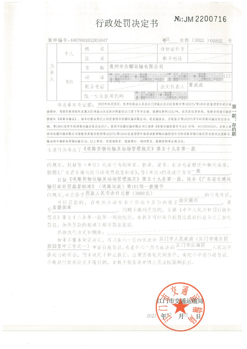 惠州市杰耀运输有限公司: