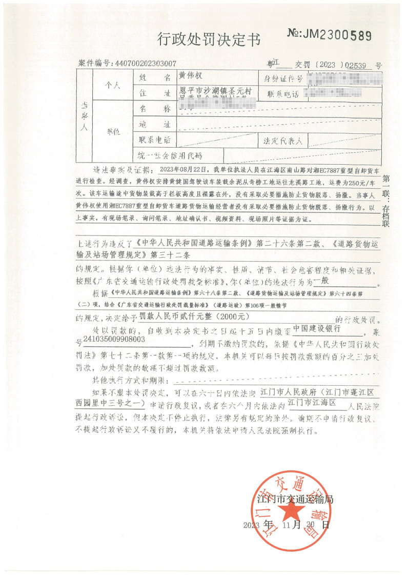 如不服处罚决定,可以自《行政处罚决定书》和《责令改正通知书》送达之日起60日内向51吃瓜 申请行政复议,或者在6个月内依法向江门市江海区人民法院提起行政诉讼,但行政处罚决定不停止执行,法律另有规定的除外。逾期不申请行政复议、不提起行政诉讼又不履行的,本机关将依法申请人民法院强制执行或者依照有关规定强制执行。