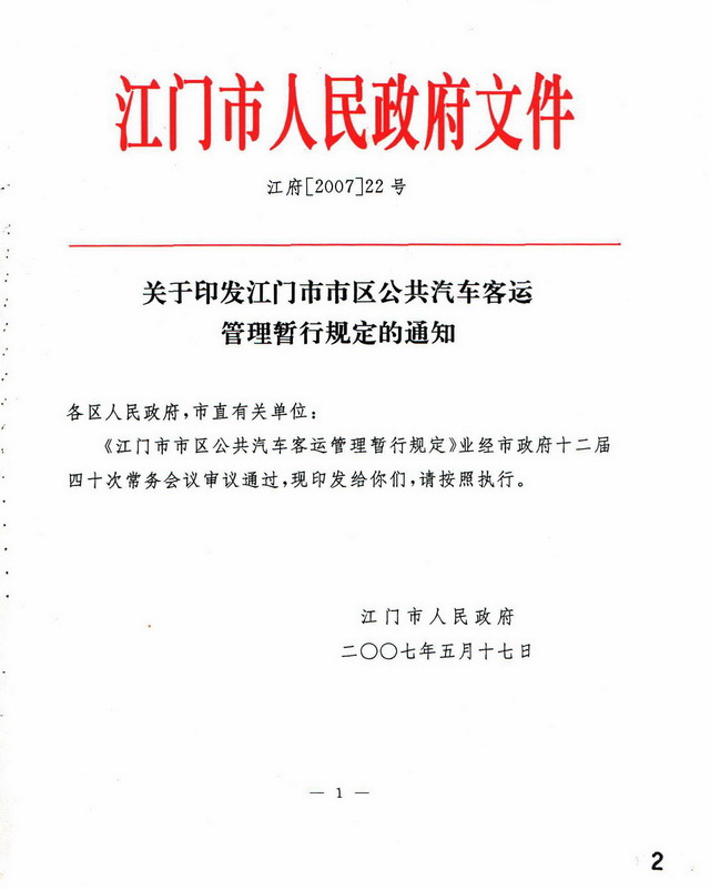 关于印发江门市市区公共汽车客运管理暂行规定的通知 【已废止】