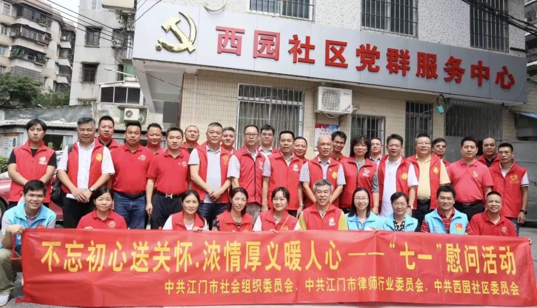 为创新推进基层党建工作,动员和组织社会力量开展党内激励关怀帮扶,在中国共产党成立98周年纪念日来临之际,江门市社会组织党委组织江门市酒类行业协会党支部、江门市浙江商会党支部、江门市江西商会党支部等3个支部,联合江门市律师行业协会党委共30余名党员、义工来到蓬江区西园社区,开展走访慰问优秀党员、老党员和困难群众活动。