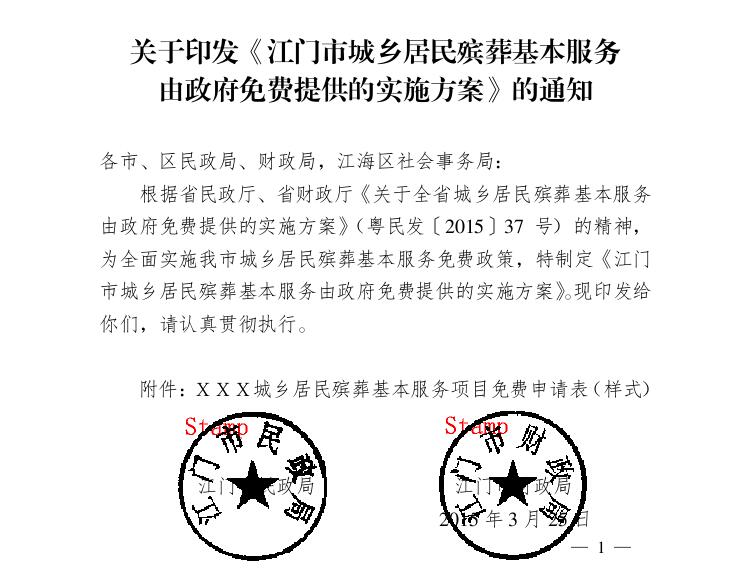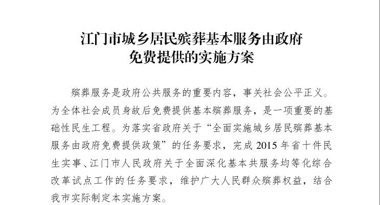 关于印发《江门市城乡居民殡葬基本服务 由政府免费提供的实施方案》的通知
