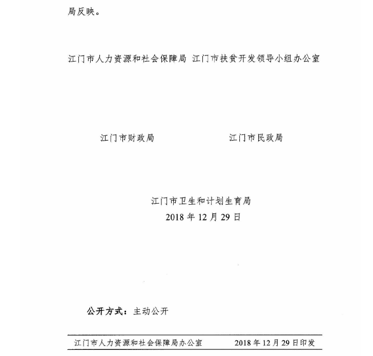 江门市人力资源和社会保障局 江门市扶贫开发领导小组办公室 江门市财政局 江门市民政局 江门市卫生和计划生育局关于印发江门市城乡居民精准扶贫精准脱贫医疗保障实施方案的通知【已废止】