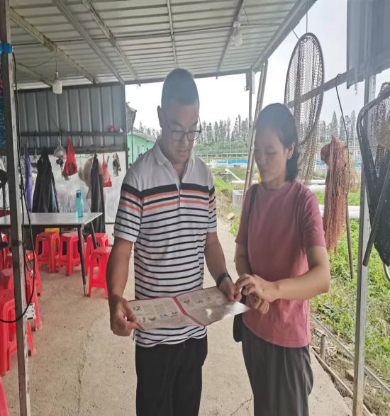 小队各成员通过派发宣传单张和现场讲解的形式,向企业主、农户宣传新修订的《农产品质量安全法》知识,重点讲解新修订的法律条款,讲清楚禁限用农药的种类和休药期等相关规定,指导主体应用承诺达标合格证,引导主体科学用药、诚信生产经营。