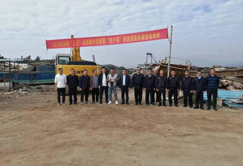 2月2日,市海洋综合执法支队、台山大队联合赤溪、都斛、广海、海宴等镇举行台山市涉渔“三无”船舶集中拆解现场会,依法依规清拆2022年年末查获的19艘涉渔“三无”船舶。市海洋综合执法支队支队长汪炳康参加了拆解现场会。