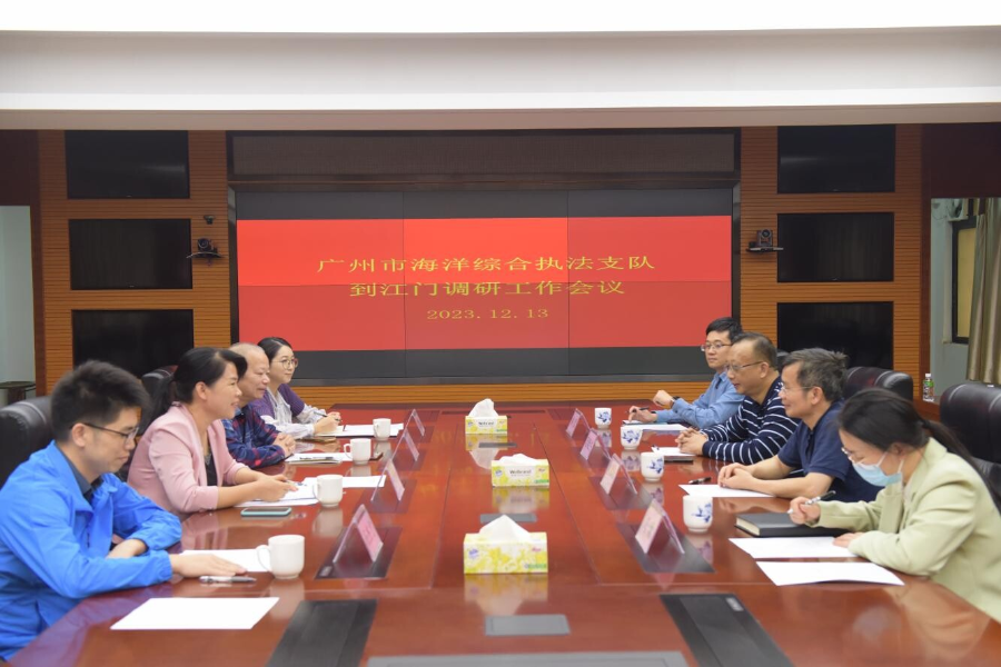 12月13日,广州市海洋综合执法支队到江门支队就机构改革等工作开展调研。市海洋综合执法支队党组书记、政委邓明芳,副支队长林为民及相关科室负责人参加会议。