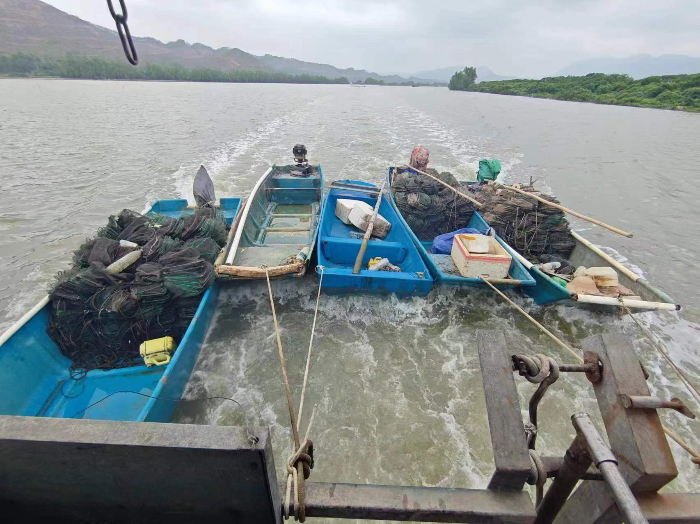为落实省、市有关领导指示批示精神,深刻汲取相关事故教训,举一反三做好安全生产监管工作,5月10日,经前期暗访摸排和周密部署,在省海洋综合执法总队的现场指导下,江门支队组织台山大队,联合属地镇政府、公安打私等部门,兵分两路在台山赤溪、深井两镇开展打击涉渔“三无”船舶专项执法行动,采取“岸线巡查摸排取证,属地政府统一协调,执法单位联合清理”的模式,共出动执法人员88人,执法船艇2艘,执法车辆6辆,一举查获涉渔“三无”船舶19艘,有效消除了渔业安全隐患,有力震慑了违法犯罪行为。