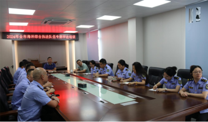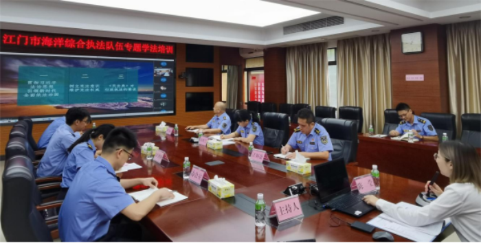 6月20日,市海洋综合执法支队举办全市海洋综合执法队伍专题学法培训,邀请了支队法律顾问、广东良匠律师事务所执业律师陈莹作习近平法治思想以及《中华人民共和国宪法》《中华人民共和国民法典》专题辅导讲课。支队设主会场,各大队设分会场,支队班子成员及各科室、各大队执法人员参加了本次培训。