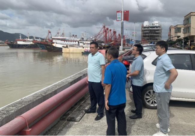 6月24日,市海洋综合执法支队支队长汪炳康带队到台山市广海渔港、烽火角避风锚地和新会区崖门渔港督导检查渔船防风和休渔期渔船渔港消防安全工作。