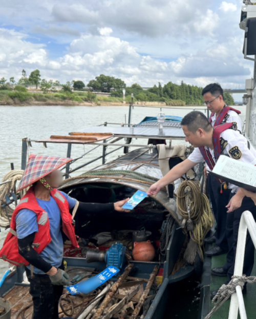 7月11日,市海洋综合执法支队派员到台山市广海镇开展钓具渔船安全检查工作。
