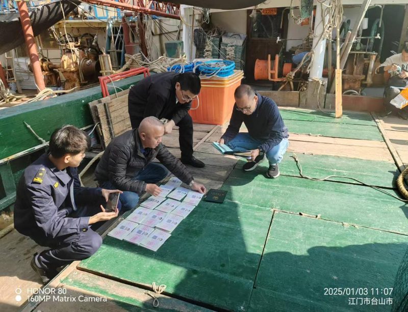 1月3日,市海洋综合执法支队副支队长钟树年到台山市广海镇开展岁末年初渔船安全生产检查工作。