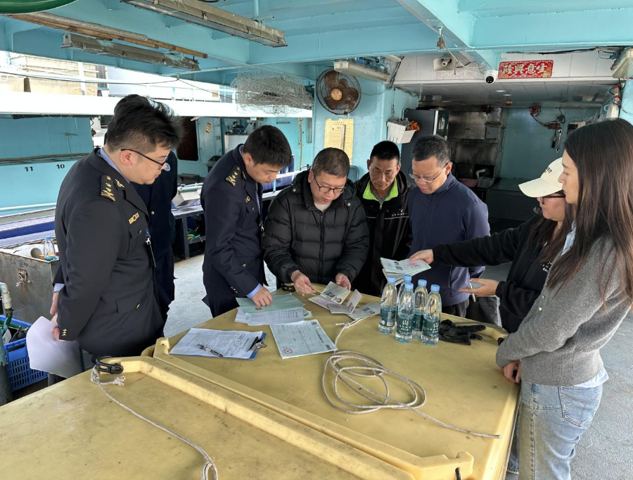 4月1日,市海洋综合执法支队副支队长钟树年带队到蓬江区检验技术服务机构开展核查工作。