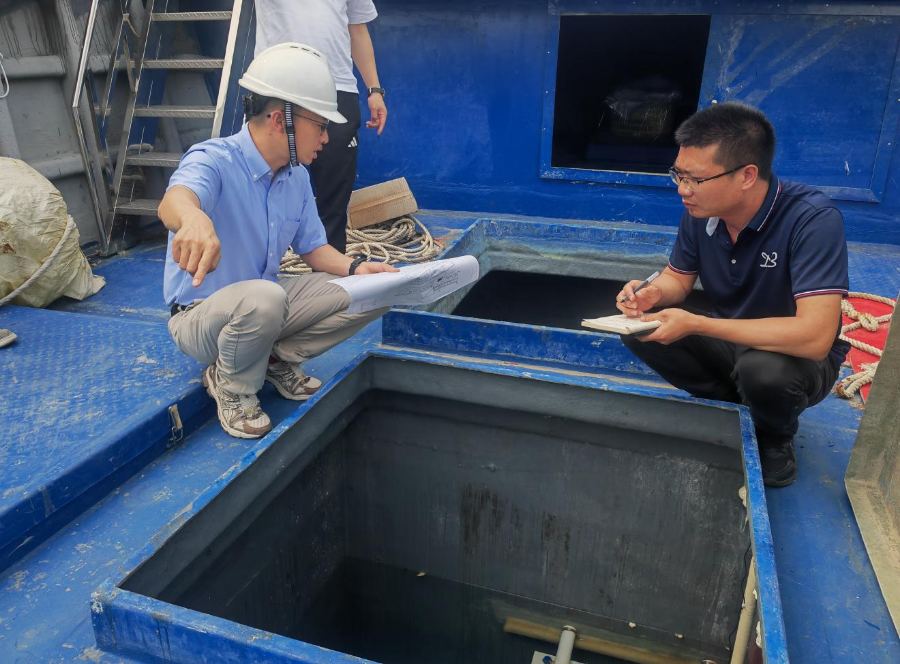 4月11日,市海洋综合执法支队到台山市广海镇、汶村镇渔船建造企业开展渔船检验工作。