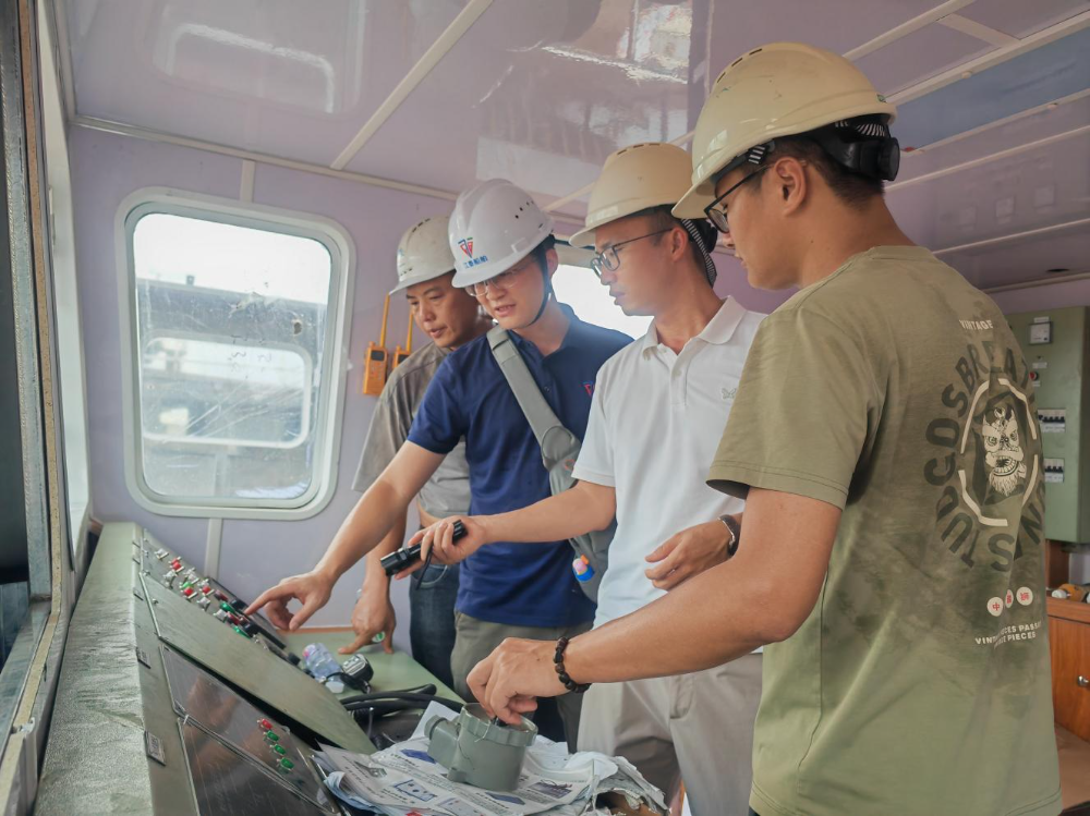 7月8日,市海洋综合执法支队渔船渔港监督科到台山市大江镇开展渔船检验工作。