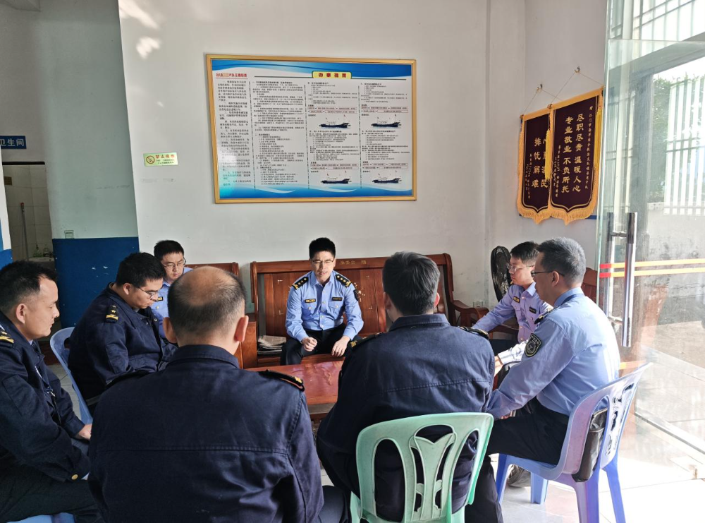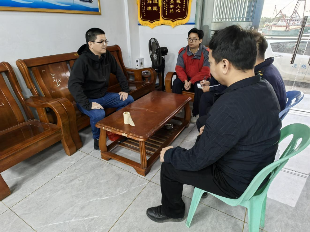 11月19日,市海洋综合执法支队到台山市横山渔港开展渔船渔港安全检查,并与镇海湾中队执法人员进行相关工作座谈。
