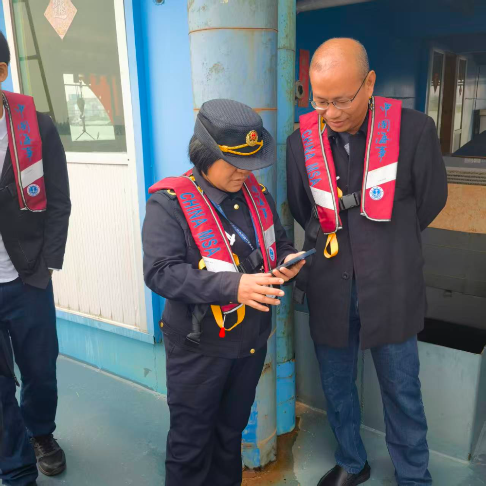 11月14日,市海洋综合执法支队海洋执法科到新会区崖门镇参加市水利局组织的2025年第四季度第二次洗砂联合监管执法行动。期间,对银洲湖航道运砂船进行登船检查。