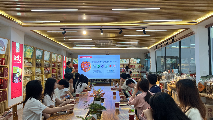 在广东岭南大健康生态科技集团,市农业农村局团支部、市民政局团支部的团员青年干部参观了陈皮展厅,听取了市“百千万工程”青年宣讲团成员陈健荣介绍,了解了新会陈皮的炮制技艺、存储技术、产学研合作、品牌建设、带动就业等方面的情况。