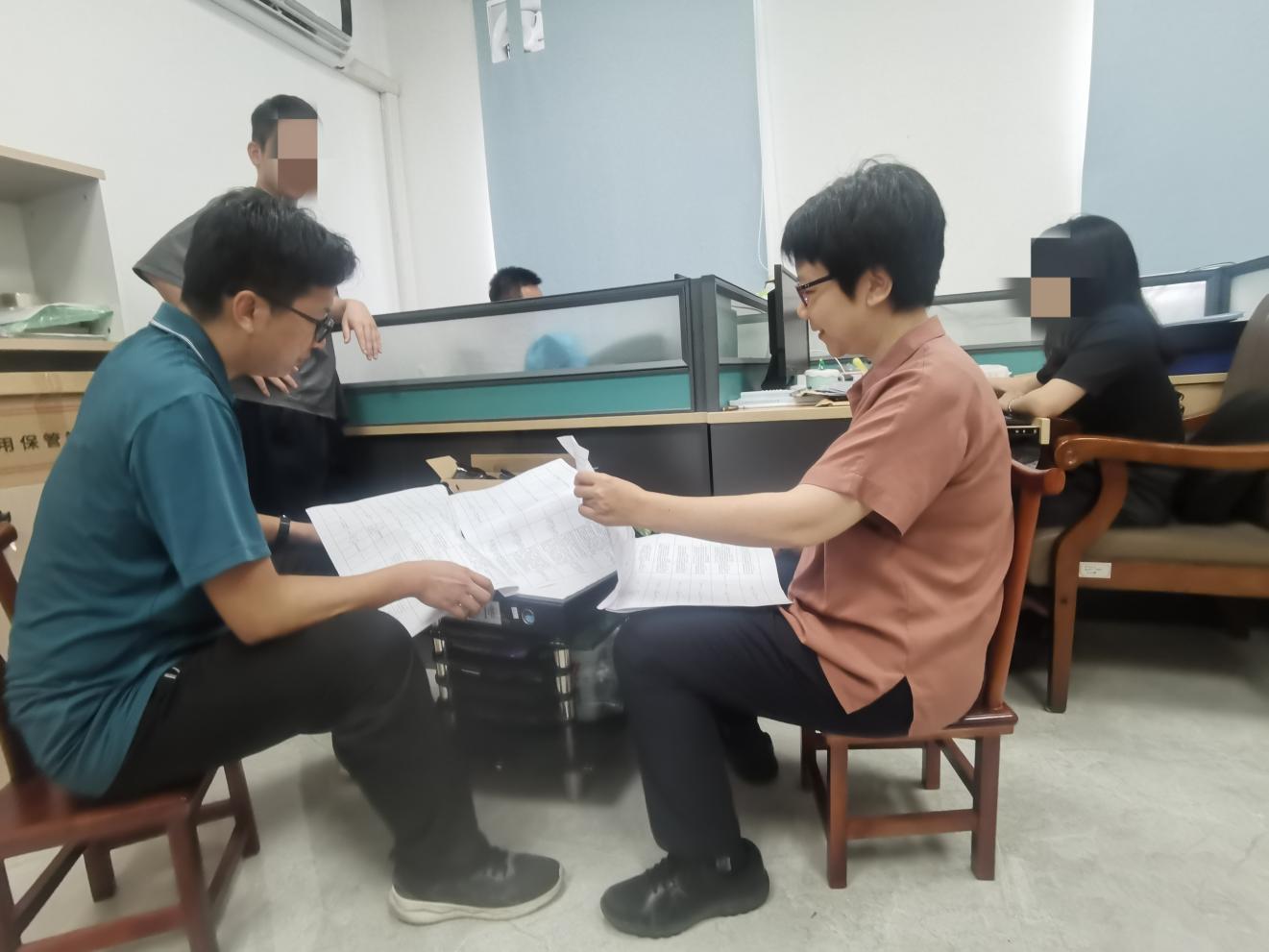 7月2日,市海洋综合执法支队海洋执法科、法制与督察科到台山大队开展案件会审,对某非法用海案件办案细节提出意见。