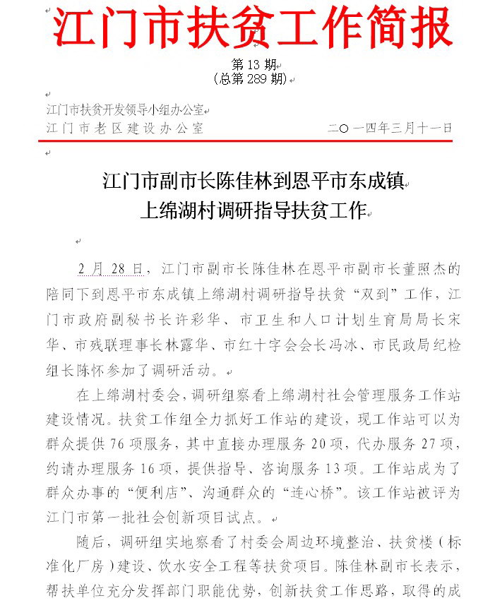 2014年江门市扶贫工作简报第13期(总第289期)