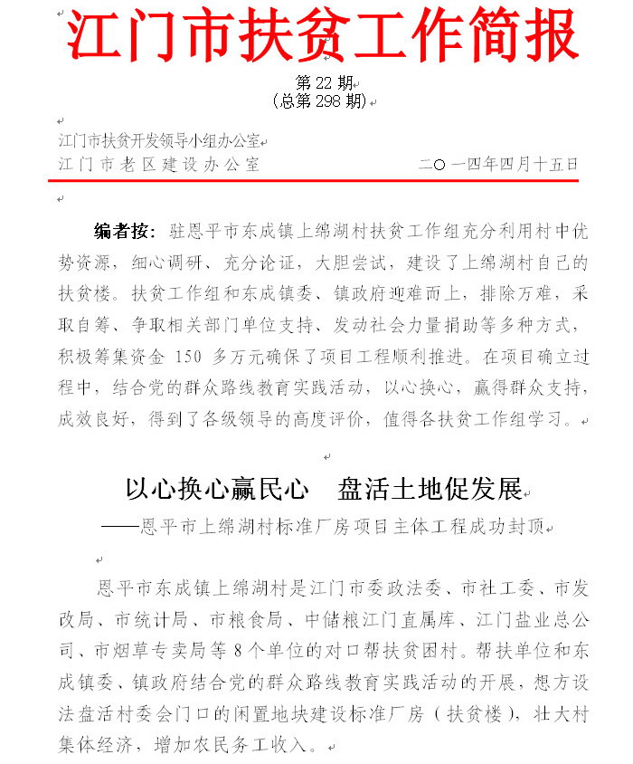 2014年江门市扶贫工作简报第22期(总第298期)