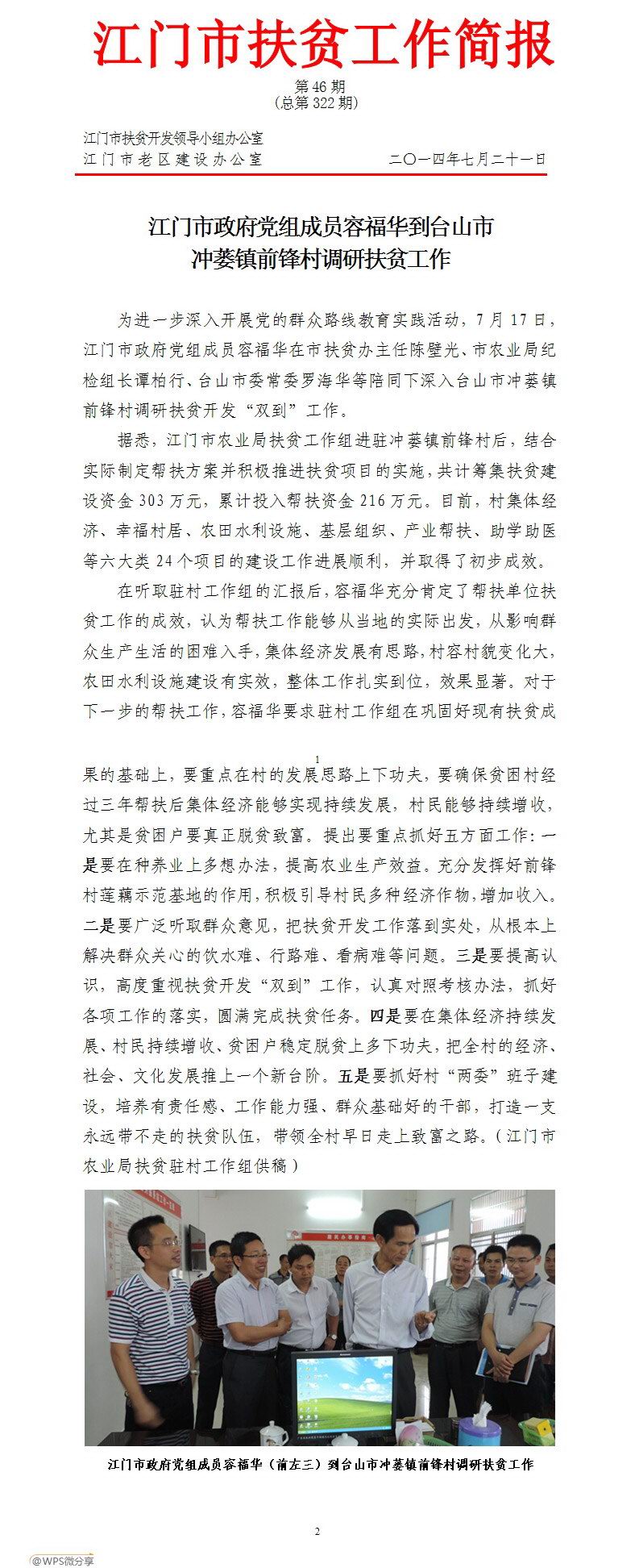 2014年江门市扶贫工作简报第46期(总第322期)