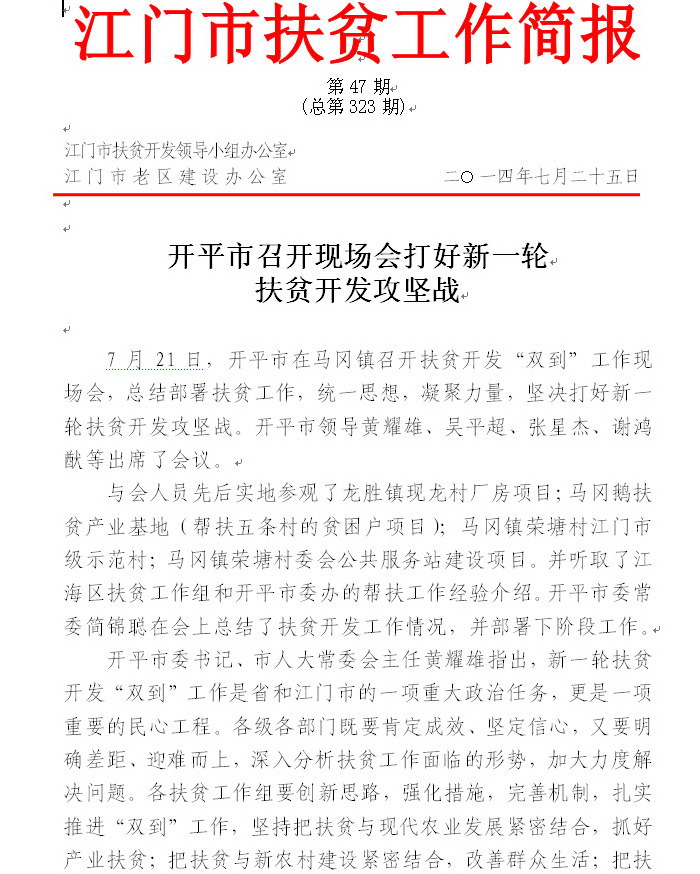2014年江门市扶贫工作简报第47期(总第323期)