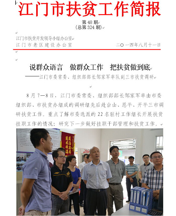 2014年江门市扶贫工作简报第48期(总第324期)