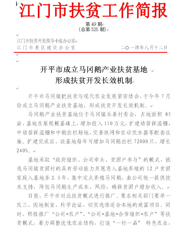 2014年江门市扶贫工作简报第49期(总第325期)
