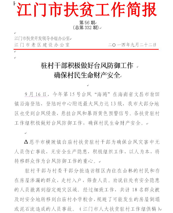 2014年江门市扶贫工作简报第56期(总第332期)