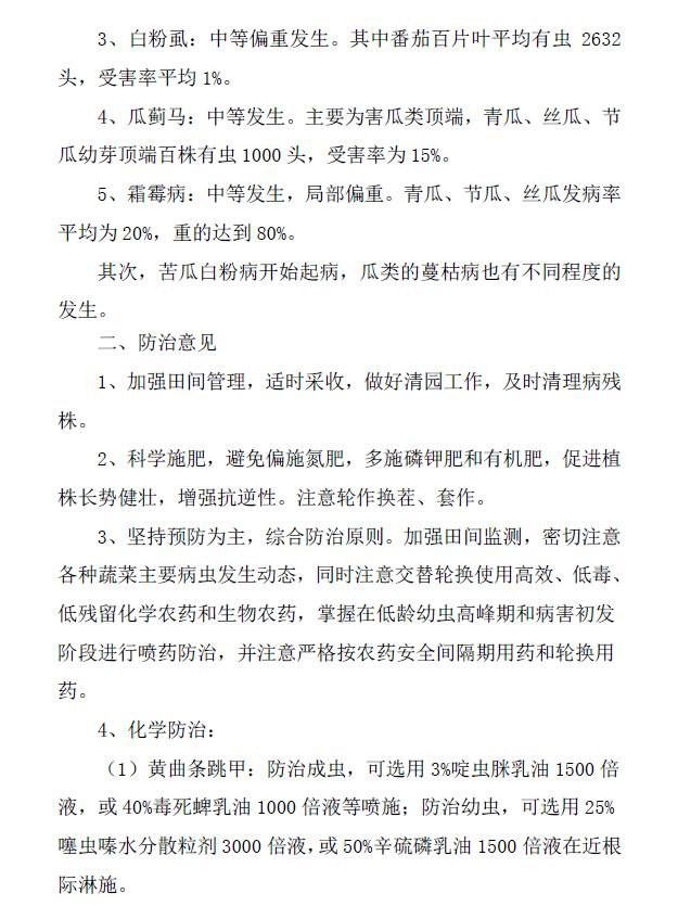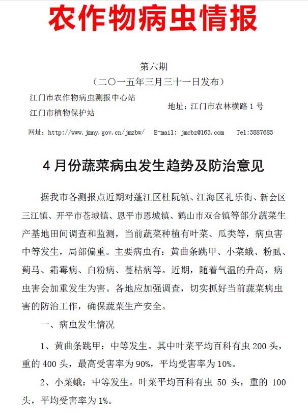2015年农作物病虫情报第六期(4月份蔬菜病虫发生趋势及防治意见)
