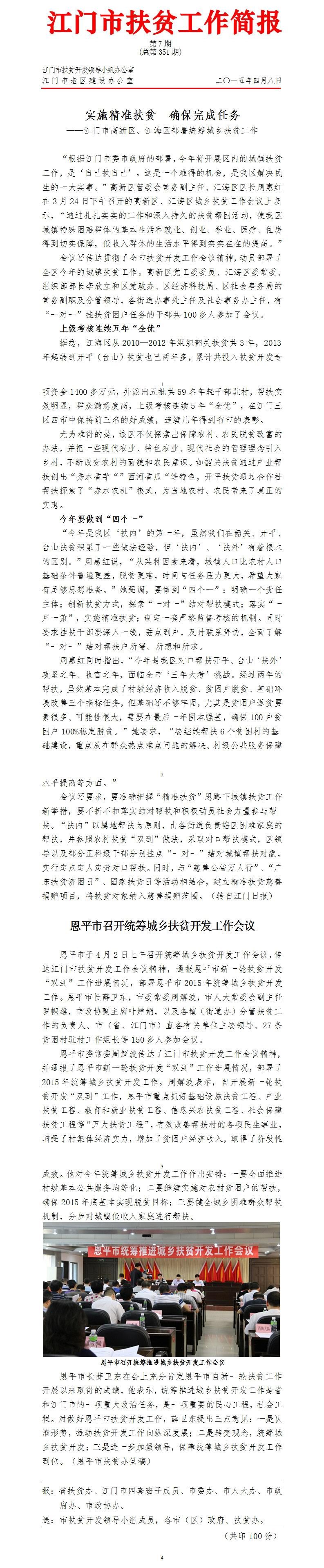 2015年江门市扶贫工作简报第7期(总第351期)