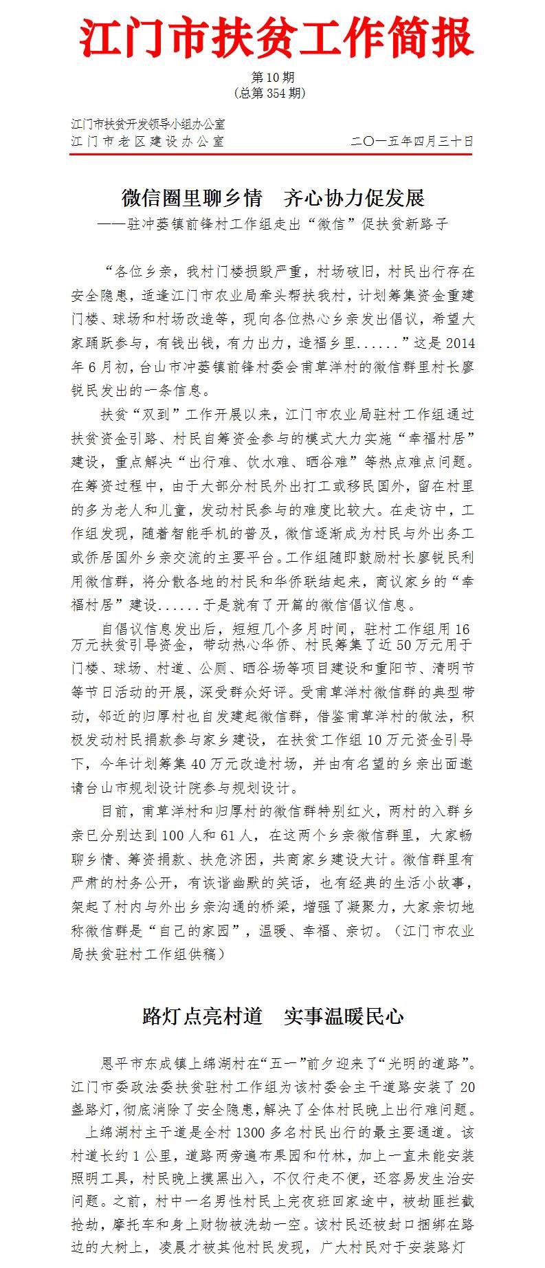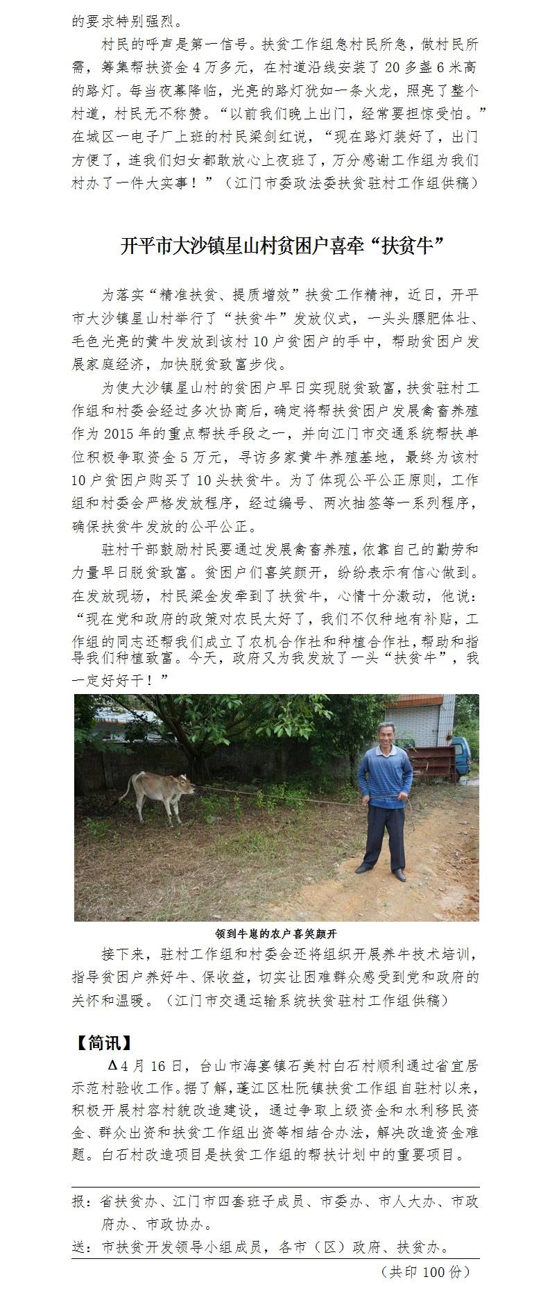2015年江门市扶贫工作简报第10期(总第354期)