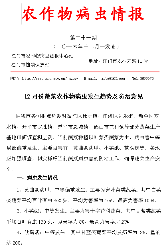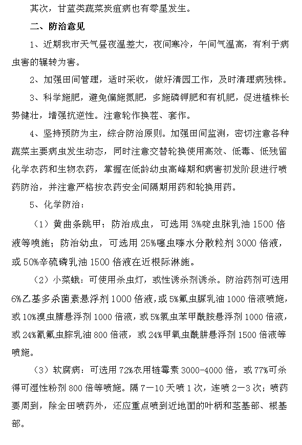 (11月份蔬菜农作物病虫发生趋势及防治意见)