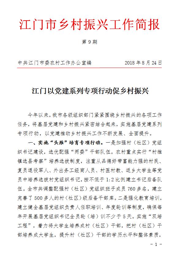 江门市乡村振兴工作简报 第9期