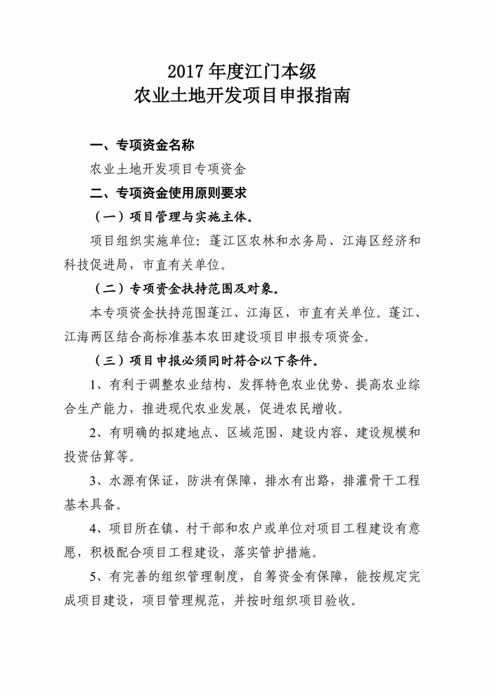 关于印发《2017年度江门市本级农业土地开发项目申报指南》的通知