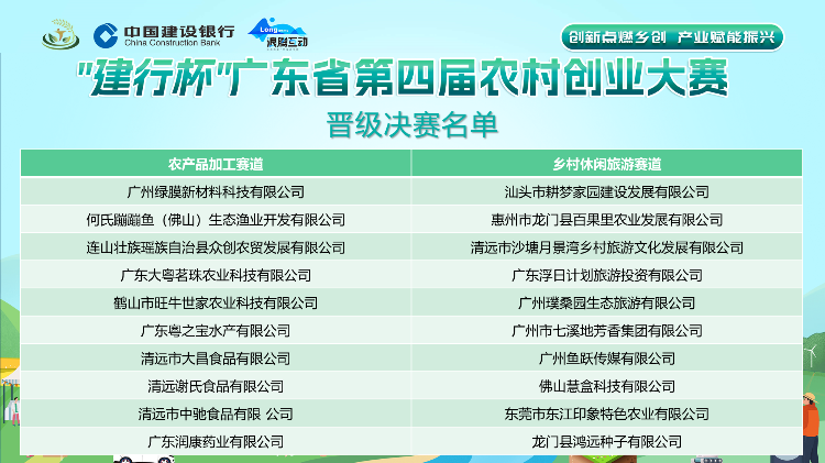 8月9日,以“创新点燃乡创 产业赋能振兴”为主题,由广东省农业农村厅联合省教育厅、省科学技术厅、省人力资源和社会保障厅、省退役军人事务厅、省总工会、共青团广东省委员会、省妇女联合会共同主办,中国建设银行股份有限公司广东省分行等单位承办的“建行杯”广东省第四届农村创业大赛半决赛圆满结束。