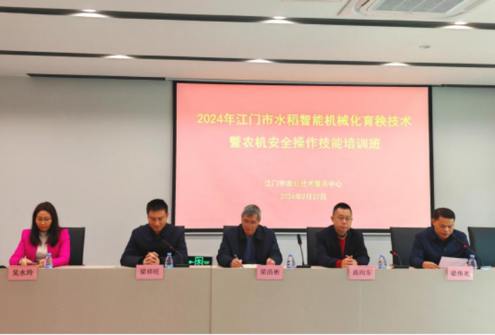 春耕备耕正当时,为充分发挥农机在春季农业生产中的主力军作用,为全年农业生产开好头、起好步提供有力装备和人才支撑,2月27日,江门市农业技术服务中心在开平市举办江门市水稻智能机械化育秧技术暨农机安全操作技能培训班,江门市农业农村局党组成员、副局长梁浩彬,开平市农业农村局党组成员、副局长高向东,江门市农业农村局农业机械化管理科、执法监督科负责人,全市农机推广、农机监理部门负责同志、技术骨干以及近100名农机操作手参加了本次培训活动。
