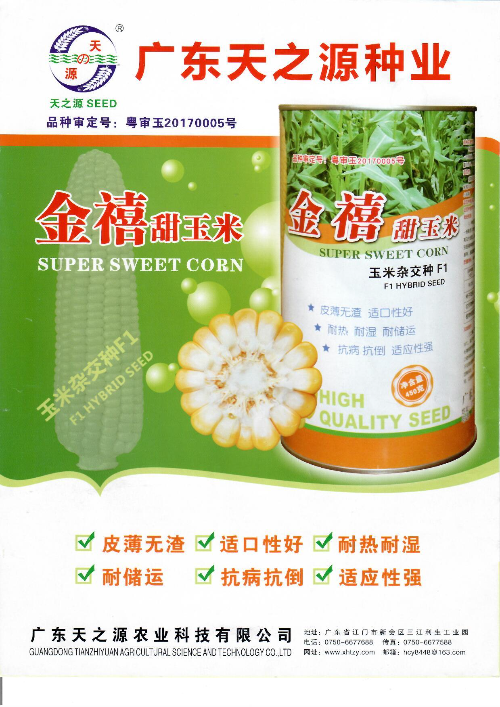 “金禧甜玉米”是广东天之源农业科技有限公司自主研发的甜玉米新品种,2017年通过广东省审定,先后被评选为“高新技术产品”“广东省名牌产品”,2020年获“市科技奖二等奖”,2021年被列为“全省农业主导品种”。