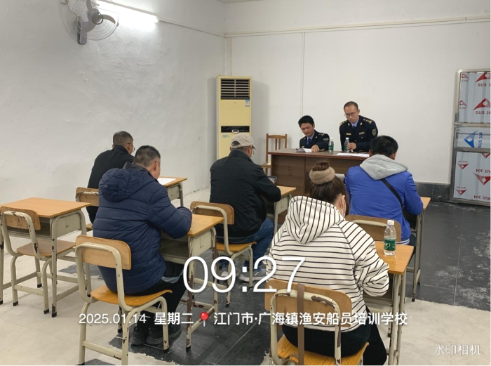 1月14日,市海洋综合执法支队派员前往台山市广海镇监考2025年第一期渔船一级职务船员考试。