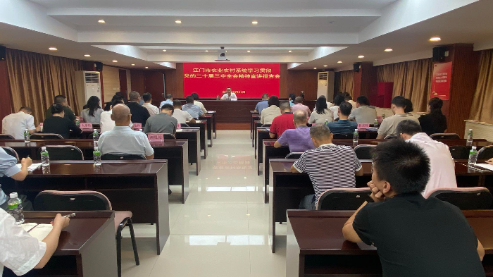 近日,市农业农村局举行江门市农业农村系统学习贯彻党的二十届三中全会精神宣讲会,同时套开局党组理论学习中心组学习会。市农业农村局党组书记、局长、市委宣讲团成员郑少强主持报告会并作宣讲主题报告。