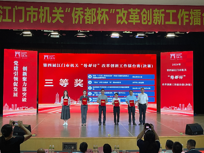 9月5日,第四届江门市机关“侨都杯”改革创新工作擂台赛(服务增效项目)决赛在工人文化宫三楼工人会堂隆重举行,全市共有43个项目参加角逐。经过紧张激烈的比拼,市农业技术服务中心代表江门市农业农村局的参赛作品《完善农业技术推广服务体系,打通科技成果向农业新质生产力转化“最后一公里”》闯入前九名,荣获“服务增效”类别三等奖。