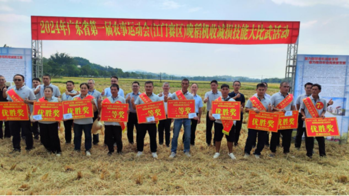 十月的五邑大地,田间金黄遍野、稻香飘逸,农机轰鸣,奏响了收割的“丰收曲”。10月30日,由广东省农业农村厅主办,广东省农业技术推广中心、江门市农业农村局承办的2024年广东省第一届农事运动会(江门赛区)晚稻机收减损技能大比武活动在台山市四九镇举办,江门市农业农村局党组成员、副局长梁浩彬,江门市统计局党组成员、二级调研员赵前斌,国家统计局江门调查队副队长邓厚金,各县(市、区)农业农村部门分管农机工作领导、农机管理和推广人员,以及相关政策性农业保险承保机构、水稻种植户、农机大户等100多人参加了本次活动。