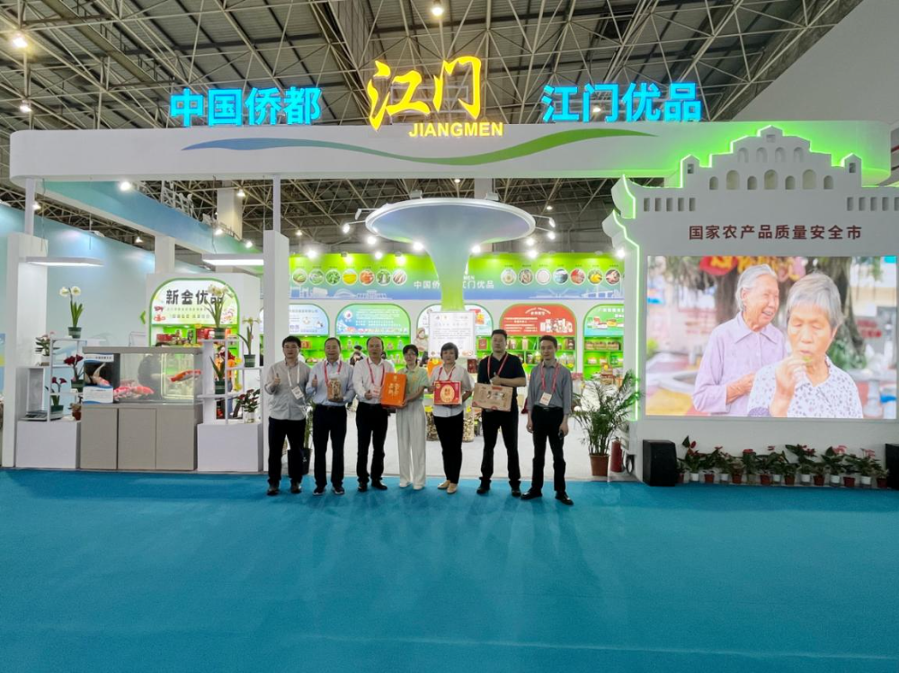 为充分展示江门农业发展成果,江门市农业农村局精心谋划,在馆内打造了108平方米的特装“江门馆”,并安排6个食品展位,组织17家企业参展。展品涵盖新会陈皮、马冈鹅、禽蛋、大米、茶叶、预制菜,以及锦鲤、花卉等,种类丰富,集中呈现了江门农业的特色与优势。