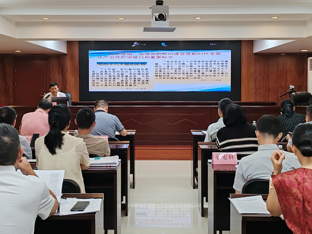 7月17日,市农业农村局举办深入贯彻中央八项规定精神学习教育宣讲报告会,邀请学习教育市委宣讲团成员、市委党校常务副校长张学东同志作专题宣讲辅导。局机关、所属事业单位及市海洋综合执法支队全体在职在编人员参加报告会。