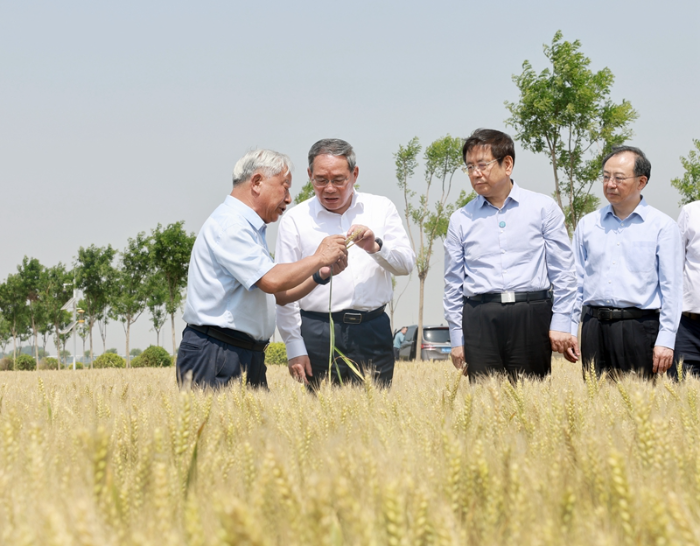 李强先后来到郑州市、新乡市,走进农田、育种基地、食品企业、科研机构等,调研相关工作。新乡市平原示范区高标准农田里,金色的麦浪起伏荡漾,小麦即将进入集中收获期。李强走到田间,察看麦穗长势,听取“三夏”生产和高标准农田建设汇报,与农业专家交流。李强指出,夏粮丰收,全年主动。要精心抓好夏收工作,加强跨区机收组织调度,保障及时烘干晾晒,统筹好夏粮田管、防灾减灾和夏播准备。要做好夏粮收储,发挥最低收购价托底作用,确保农民种粮有钱赚。要把更多符合条件的农田改造成高标准农田。他强调,国家支持粮食生产的政策只会加强,不会减弱。