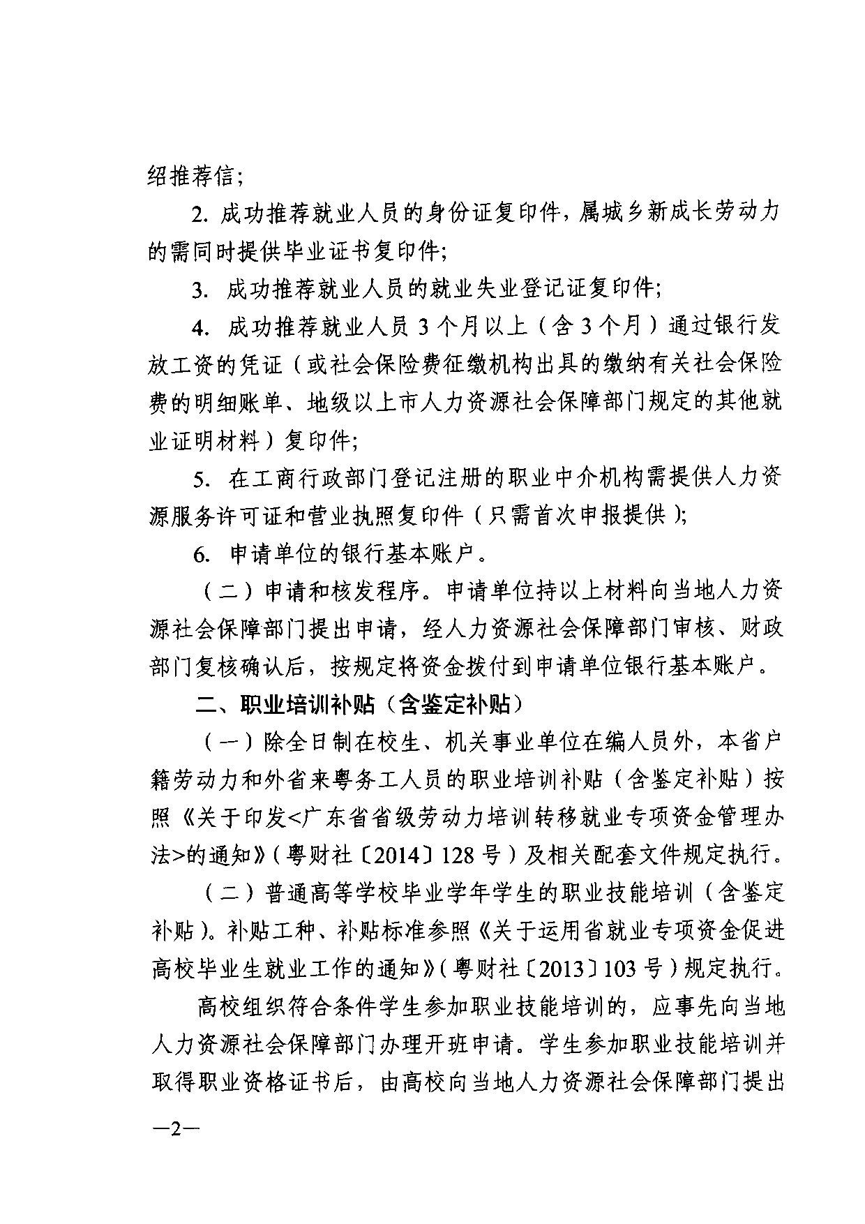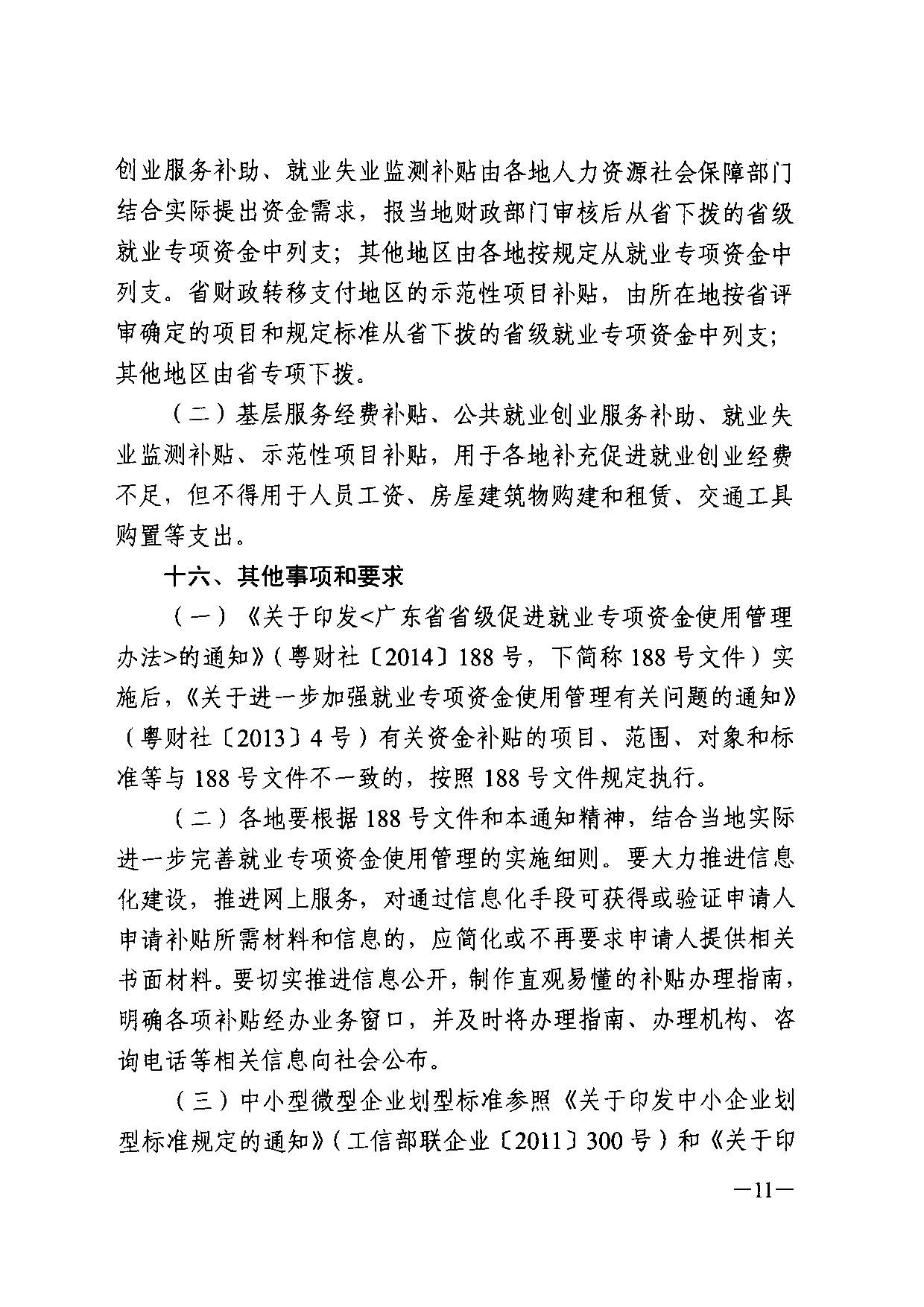 关于明确广东省省级促进就业专项资金补贴项目申请和核发有关事项的通知(粤人社发【2014】213号)