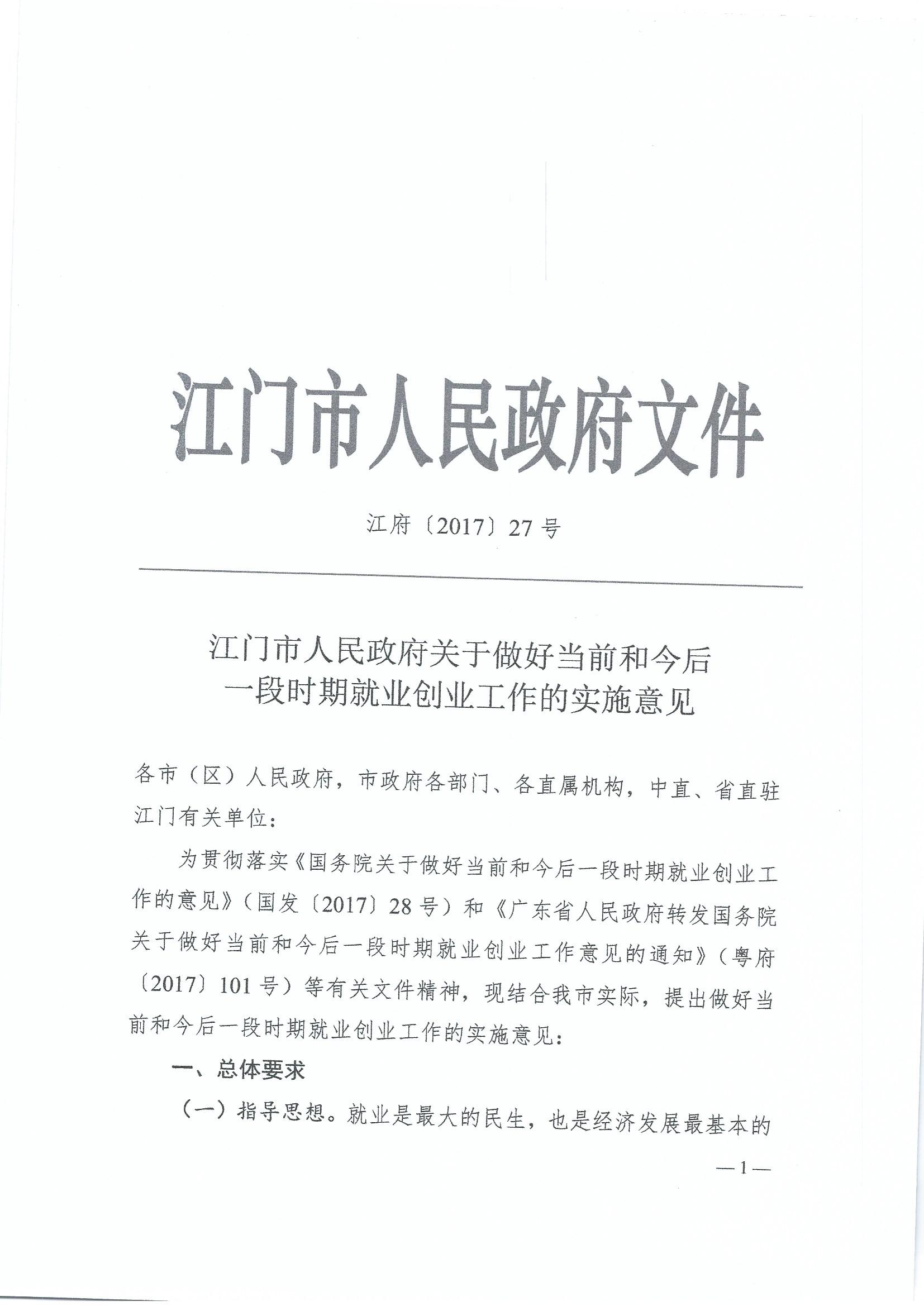 江府〔2017〕27号_51吃瓜 关于做好当前和今后一段时期就业创业工作的实施意见