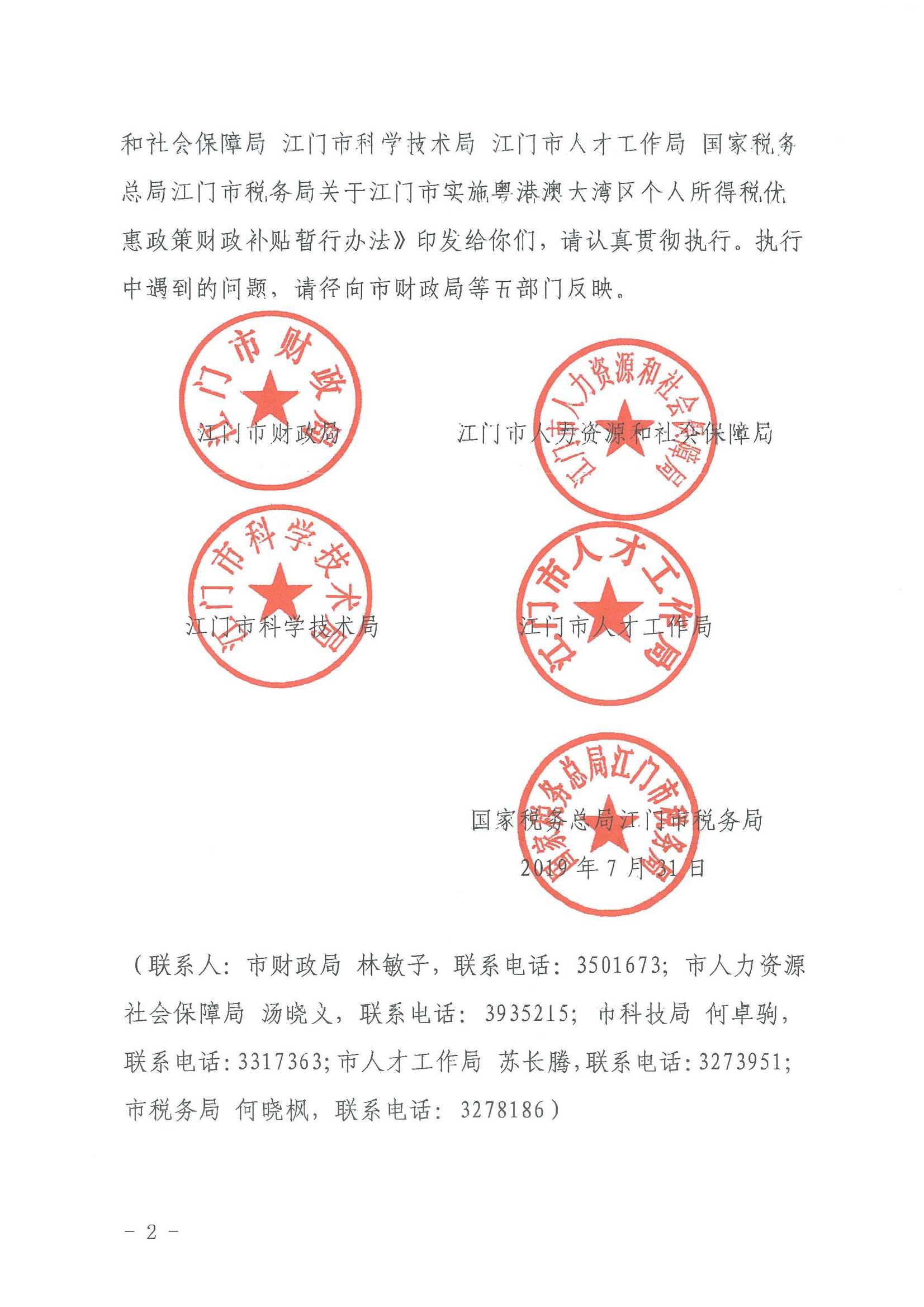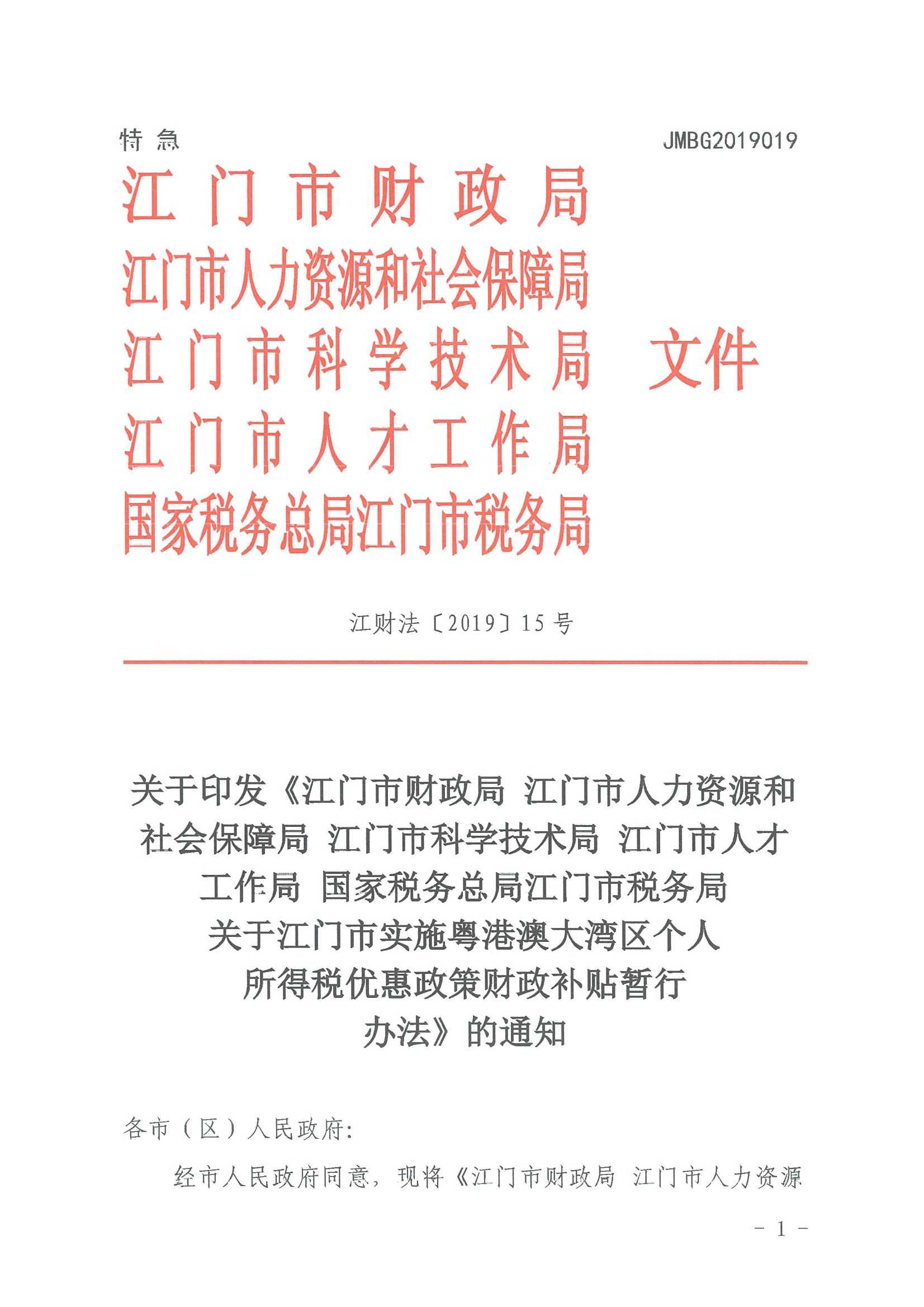 【已失效】关于印发《江门市实施粤港澳大湾区个人所得税优惠政策财政补贴暂行办法》的通知