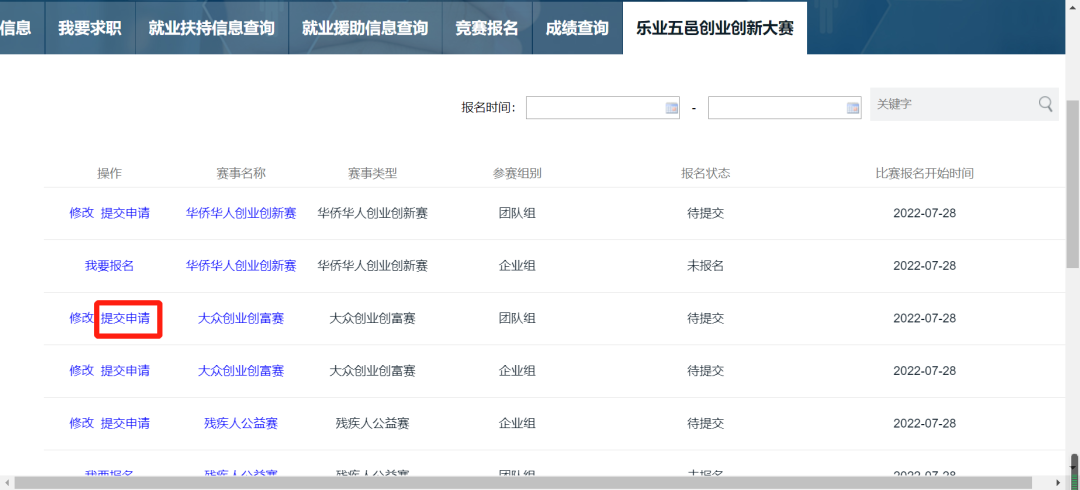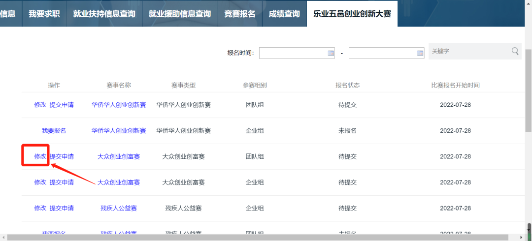 (二)进入第五届江门市“乐业五邑”创业创新大赛官方网站,点击【我要报名】;