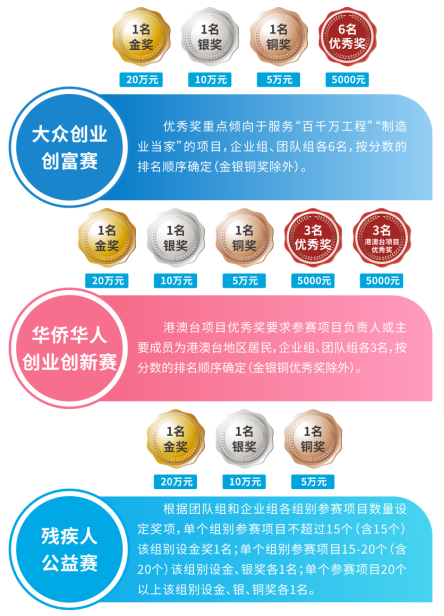 在“第五届江门市‘乐业五邑’创业创新大赛”的统一名称下,分设大众创业创富赛、华侨华人创业创新赛、残疾人公益赛三个单项赛事。
