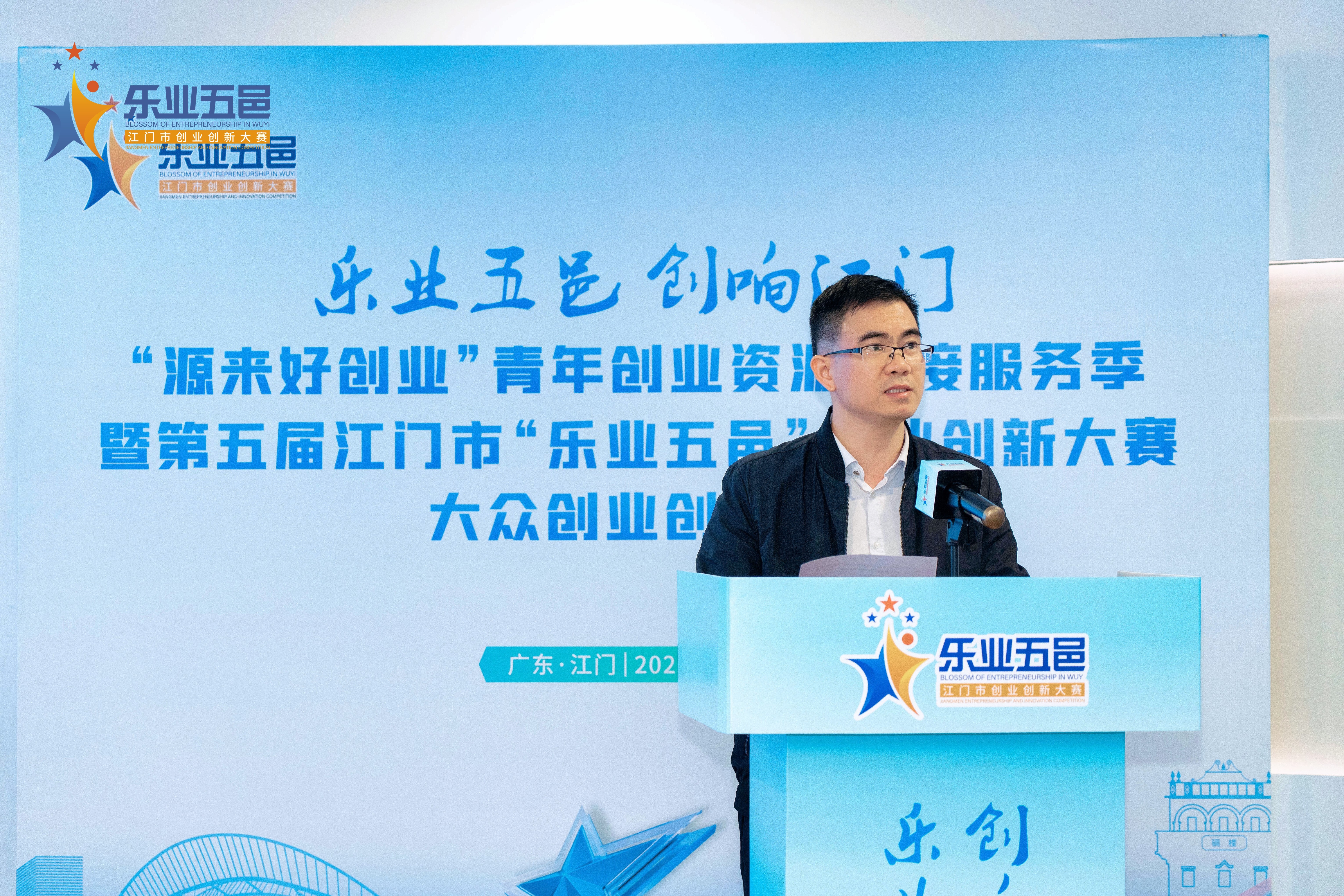 “乐业五邑 创响江门”,11月14日,由江门市人力资源和社会保障局主办的第五届江门市“乐业五邑”创业创新大赛之大众创业创富赛决赛在珠西先进产业优秀人才创业创新园6栋8楼演播厅举行,来自省内外晋级决赛的18个优秀项目群雄逐鹿,上演巅峰对决!江门市人力资源和社会保障局、中国农业银行江门分行、中国邮政储蓄银行江门分行、广发银行江门分行、中国建设银行江门分行等支持单位的相关领导出席决赛及颁奖仪式活动。